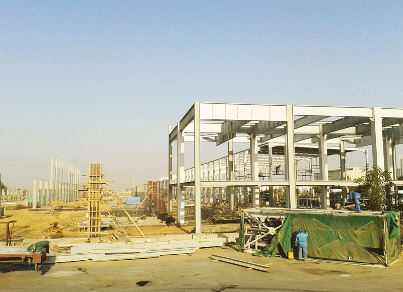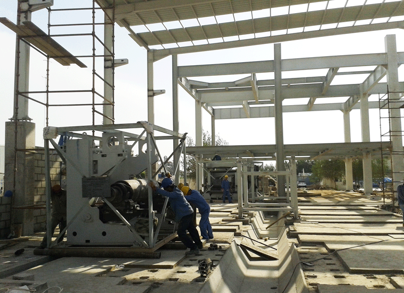 姚元君一行首先深入項目施工現(xiàn)場,對各個車間建設(shè)情況進(jìn)行了解。聽取現(xiàn)場經(jīng)理李項興對項目土建施工及安裝進(jìn)度的匯報。姚元君仔細(xì)詢問項目設(shè)計圖紙及設(shè)備到場情況,以及項目部確保工期順利實現(xiàn)的具體措施。由我院承建的沙特ASK集團(tuán)年產(chǎn)500萬平方米纖維水泥板生產(chǎn)線項目目前進(jìn)展順利,項目設(shè)計全部完成,土建及設(shè)備安裝按圖施工中, 設(shè)備采購工作完成, 合同范圍的設(shè)備已發(fā)運(yùn)至現(xiàn)場。我方負(fù)責(zé)的安裝工作有序進(jìn)行,三工位堆垛機(jī)、四工位脫模機(jī)、兩臺地面吊機(jī)、制板機(jī)開始安裝;烘干機(jī)及球磨機(jī)做安裝前放線準(zhǔn)備。