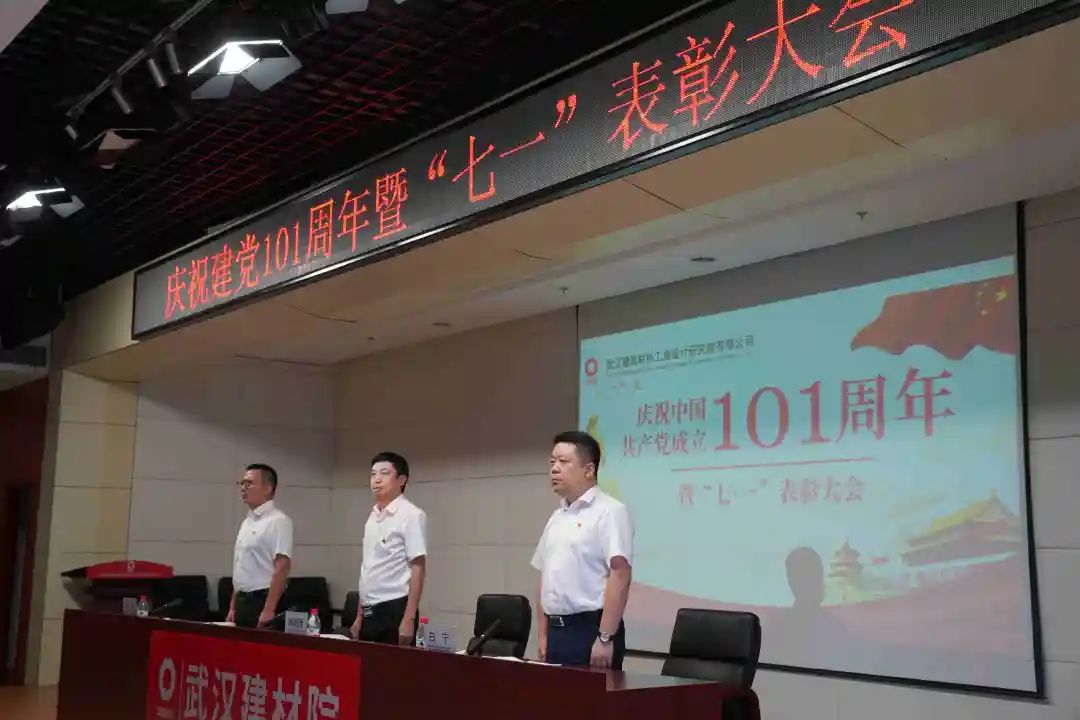6月29日下午,武漢建材院隆重召開慶祝建黨101周年暨“七一”表彰大會,紀(jì)念黨的光輝歷史,筑牢跟黨走的理想信念,表彰在黨員爭先創(chuàng)優(yōu)各項(xiàng)工作中表現(xiàn)突出的優(yōu)秀共產(chǎn)黨員、優(yōu)秀黨務(wù)工作者和先進(jìn)黨支部。大會由公司總經(jīng)理、黨委副書記楊順德主持,黨委書記白寧作慶祝建黨101周年講話。會議組織全體黨員重溫入黨誓詞。