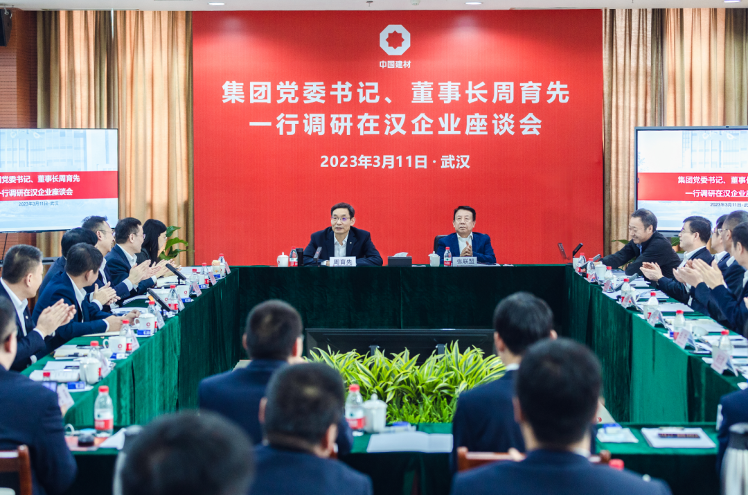 3月11日,中國建材集團(tuán)黨委書記、董事長,中國建材股份黨委書記、董事長周育先一行赴武漢建材院、中材節(jié)能(武漢)公司調(diào)研,并召開在漢企業(yè)座談會。中國工程院院士,武漢理工大學(xué)材料學(xué)科首席教授張聯(lián)盟受邀出席會議。中國建材股份黨委常委、執(zhí)行董事,新天山水泥黨委書記、總裁肖家祥,中材節(jié)能黨委書記、董事長、代理總裁孟慶林,北新建材黨委書記、董事長尹自波參加會議。