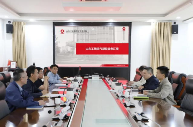 4月7日,武漢建筑材料工業(yè)設(shè)計(jì)研究院有限公司黨委書記白寧、研發(fā)中心主任秦賀勝、研發(fā)工程師李陽(yáng)一行到山東工陶院調(diào)研,雙方就氣凝膠材料與新型建材結(jié)合應(yīng)用展開座談交流。